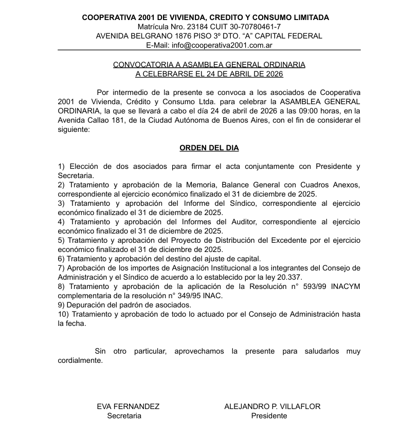 Edictos Uncategorized Convocatoria: Cooperativa 2001 de Vivienda Crédito y Consumo Ltda Jueves 9 de abril de 2026 Navegación de entradas Anterior Tras reunirse con el Gobierno, las empresas de colectivos prometen normalizar servicios en el GBASiguiente El Municipio de Hurlingham llama a licitación pública Más historias Edictos Uncategorized El Municipio de Hurlingham llama a licitación pública Edictos Uncategorized Edicto Judicial Edictos Uncategorized Convocatoria: Asamblea General de ATE Seccional Morón