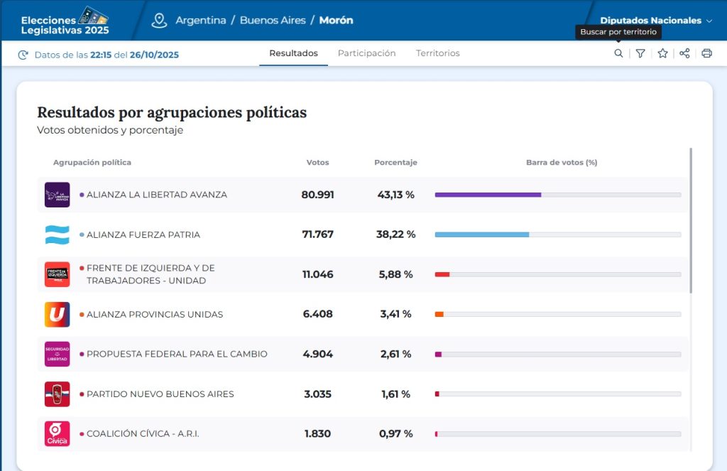 En septiembre, La Libertad Avanza había perdido por cinco puntos en Morón: Fue 44% a 39% a favor de Fuerza Patria.