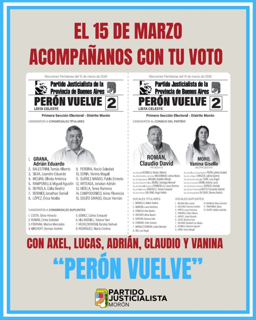 «La historia del Peronismo de Morón está latente, está vigente y es contemporánea con este movimiento sindical que lucha, que acompaña y que se planta. Y eso es lo que estamos haciendo nosotros acá», apuntó Correa, actual vice del PJ de Moreno, aunque declinó su propia lista para evitar confrontar con la intendenta Mariel Fernández, consecuente con la estrategia de unidad que encabeza el propio Kicillof como virtual jefe del PJ de la Provincia. Por eso sólo habrá internas en sólo una docena de distritos de PBA.