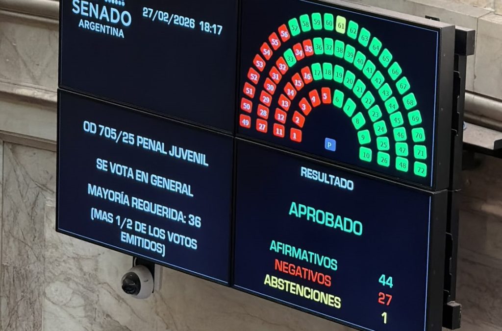 El Senado de la Nación aprobó este viernes la nueva Ley Penal Juvenil, que baja de la edad de imputabilidad de 16 a 14 años. La votación resultó 44 votos positivos, 27 negativos y una abstención. Familiares de víctimas de delitos urbanos asistieron nuevamente a la sesión y calificaron la reforma como un «logro», ante el crecimiento del crimen juvenil.