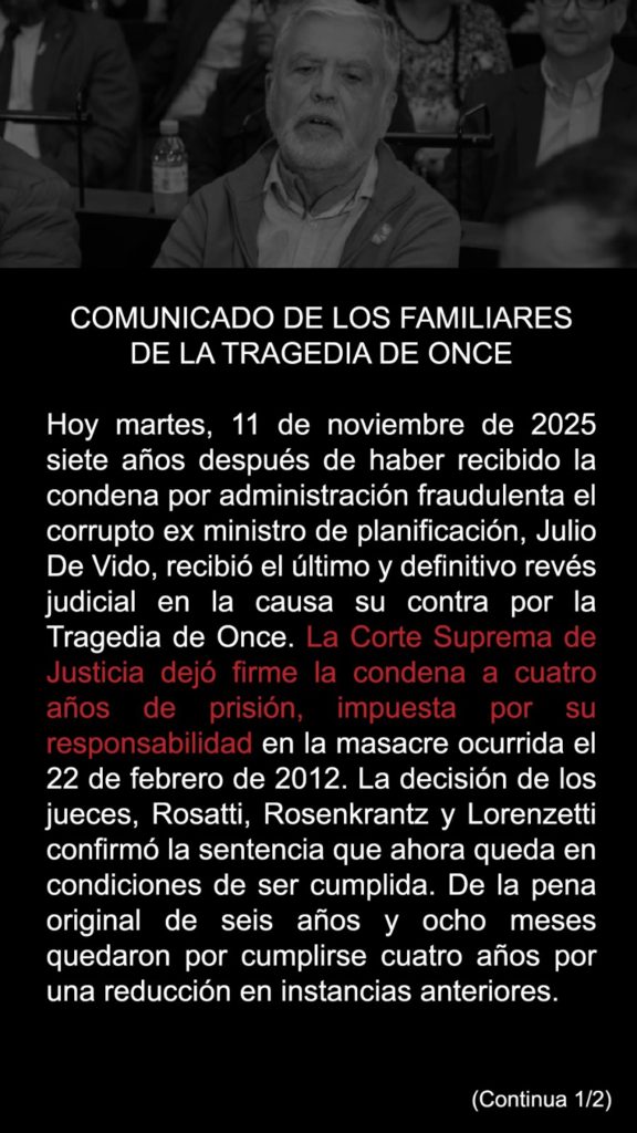 El máximo tribunal dejó firme la condena a cuatro años de prisión del ex funcionario al considerarlo partícipe necesario del delito de administración fraudulenta en perjuicio de la administración pública por la tragedia ferroviaria de Once ocurrida el 22 de febrero de 2012, y que causó la muerte de 51 personas.