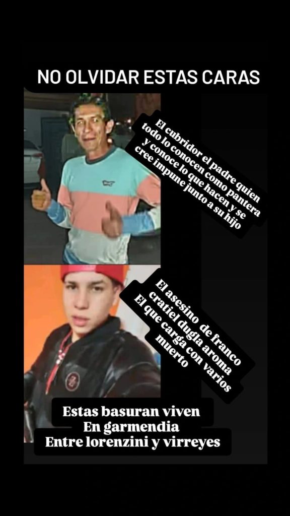 “Además de detener al asesino de Franco, la policía tiene que apresarlo para evitar que mate a más gente. También tienen que meter preso al padre que, hasta el homicidio de mi hermano, estaba en la esquina con el arma y amenazaba a todo el mundo. Hicimos denuncias y la policía no lo detuvo”, agregó el hermano de la víctima.