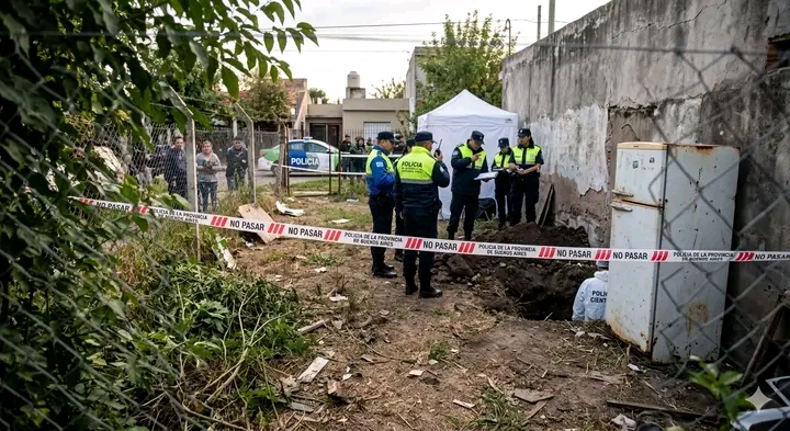 El macabro hallazgo se concretó en una finca ubicada en la calle Angel Pache al 100, donde el personal policial constató que el cadáver estaba dentro de un pozo ciego, tapado con escombros y hasta con una heladera.