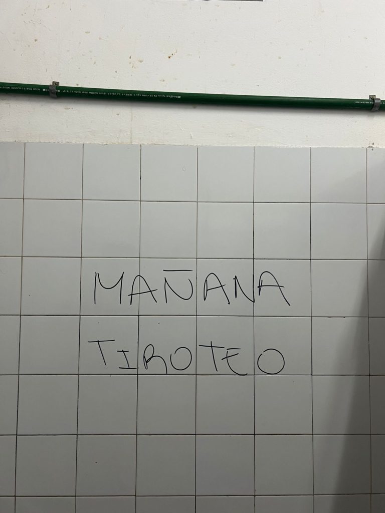En un baño apareció un cartel que decía «Vamos a matar a todos» y ponía fecha: 14 de abril. En ese caso se realizó la denuncia correspondiente y se les pidió a los alumnos que abriesen las mochilas al ingresar para que muestren su contenido.